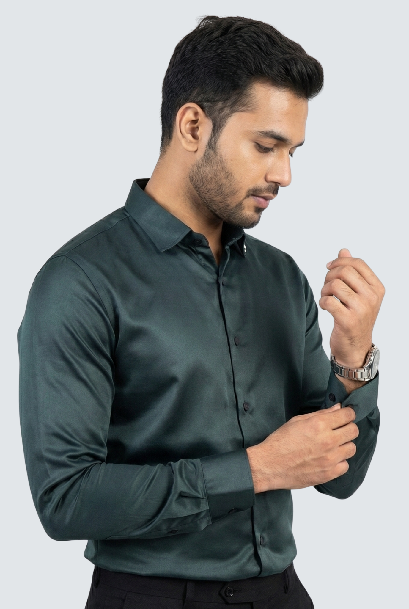B-Green Glossy Satin Shirt for Men – Premium Shine Fit
