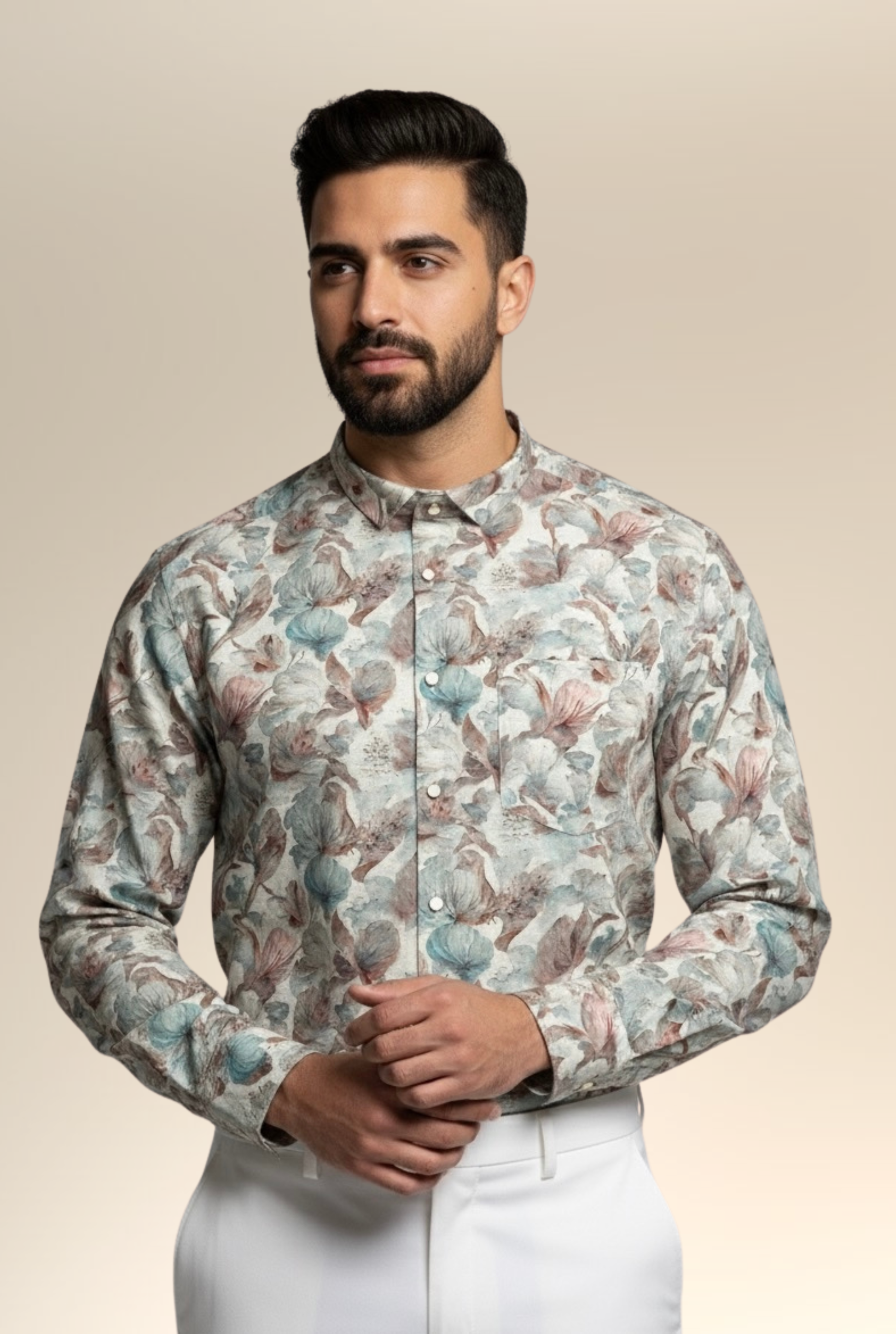 Men’s Natural Linen Floral Printed Shirt – Breathable & Timeless Style
